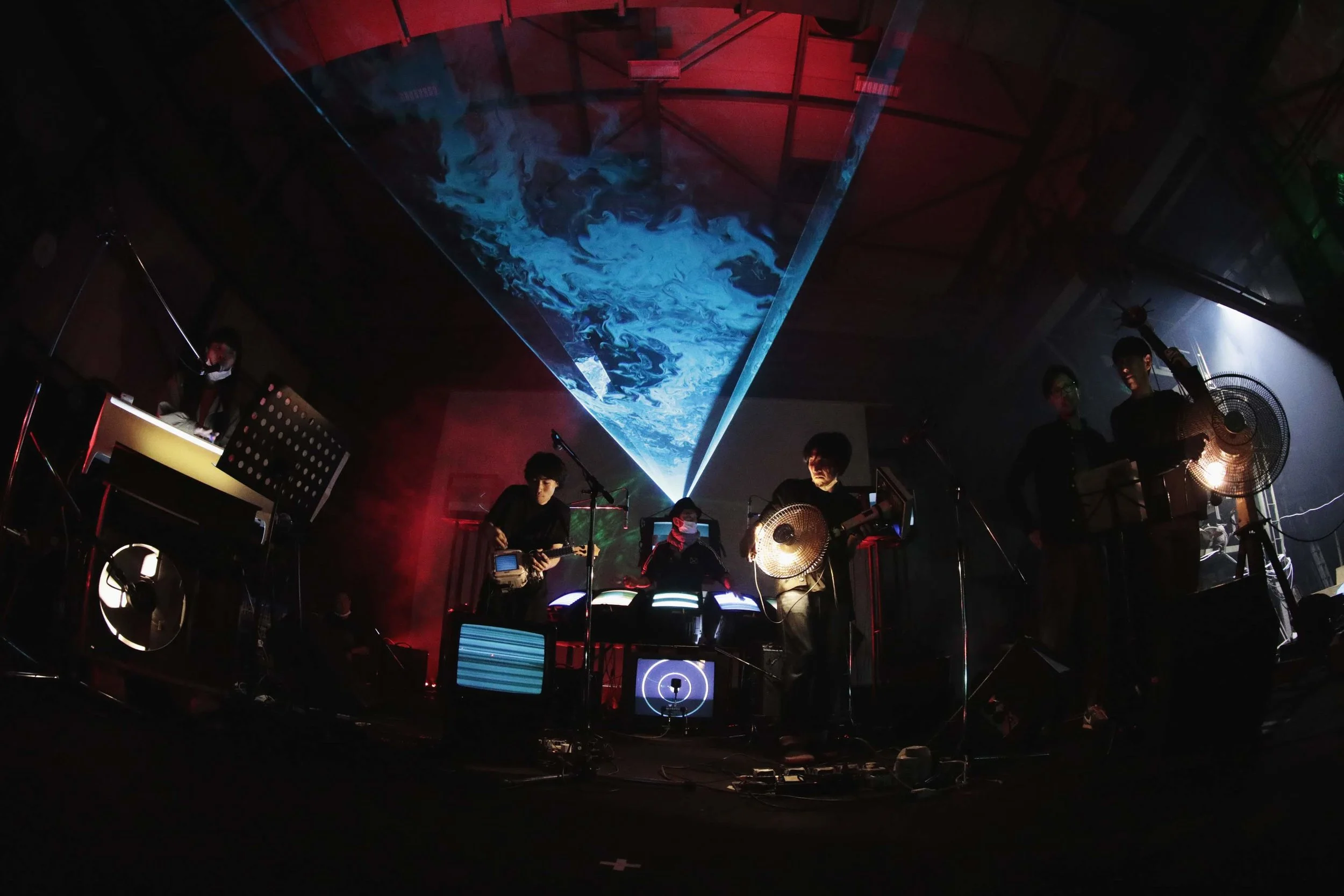 ELECTRONICOS FANTASTICOS! project has been reincarnating various retired consumer electronics as musical instruments such as Electric Fan Harp, CRT-TV Drums, Air Conditioner Harp etc. The band plays them by catching electromagnetic waves.